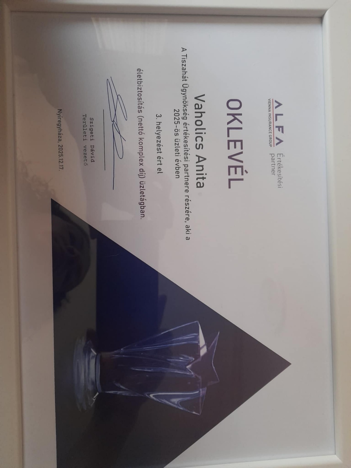 3. helyezéssel és oklevéllel ismerte el munkámat